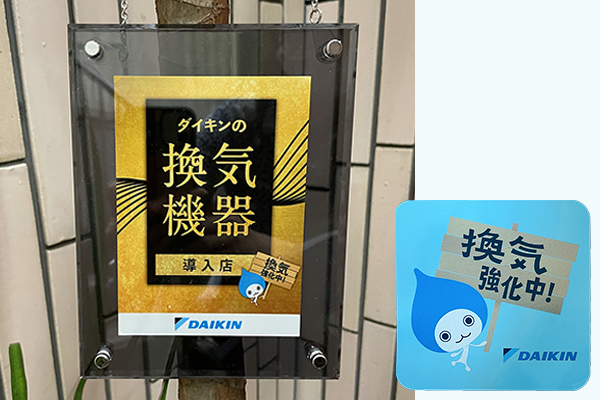 当店は空調機メーカー最大手DAIKIN社認定の「換気強化店舗」です。